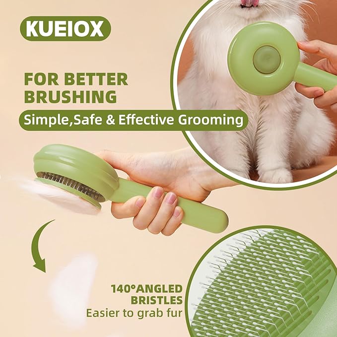 - Efficient & Fast to De-fur.Slicker brush for dogs,fast remove the loose undercoat and floating long/short hair.The dog hair brush keeps furry friend's coat shiny and healthy with effortless de-shedding. Simply press the button to retract the bristles of the dog cat brush ,then effortlessly wipe away the collected hair - cleanup is quick and easy!KUEIOX Dog brush for all short long haired dogs cats - perfect dog brushes for grooming dogs, cats, rabbits and more!