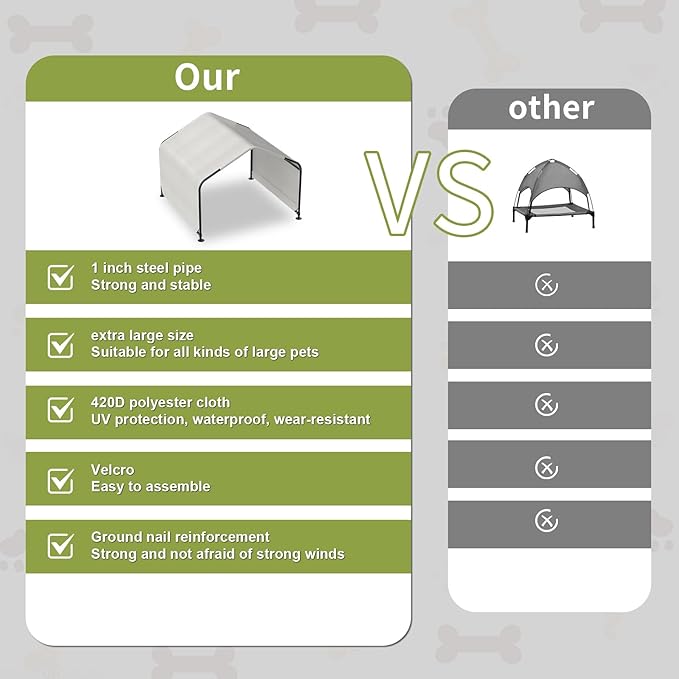 - 【Easy to Assemble】: The Casa Para Perros Grandes includes everything you need to assemble, and it only takes 15 minutes to set up your dog camping tent! Good snap-on design makes your installation and removal easier and faster. The included instruction manual helps you install it. Your can quickly get a safe and comfortable dog canopy.