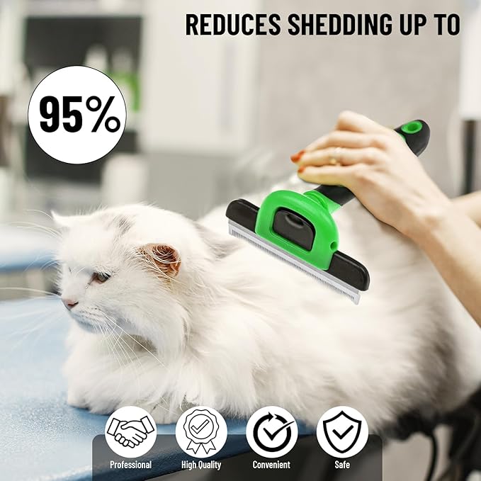 - 🐩 REVOLUTIONARY SHEDDING REDUCTION TECHNOLOGY - Are you tired of the constant struggle to keep your home free from pet hair? Not anymore. Our dog fur remover professional pet deshedding brush remove 95% of the shed hair from small, medium & large dogs and cats, leaving it smooth, shiny, and tangle-free.