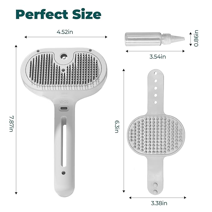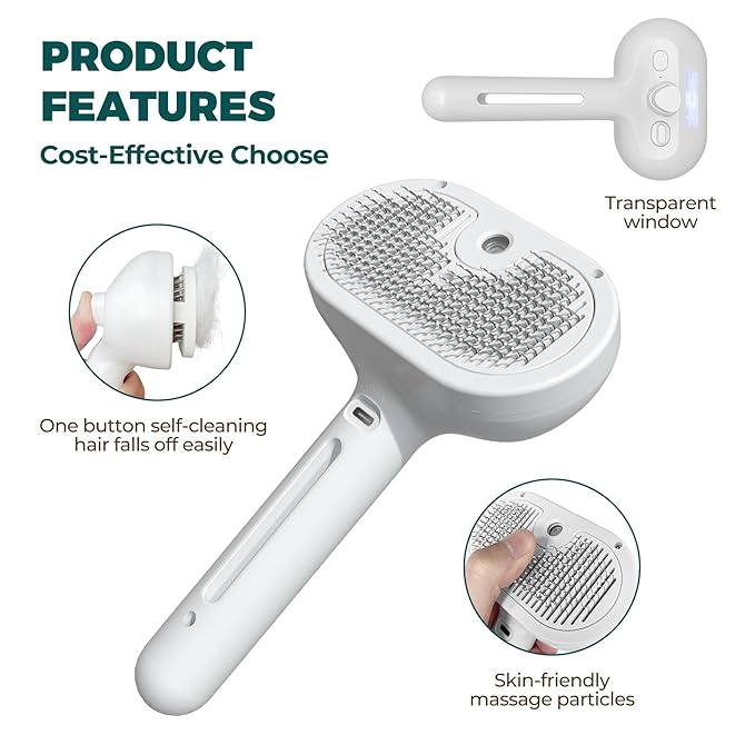 - SELF-CLEANING TECHNOLOGY: The dog must-haves & cat essentials pet spray brush features one-click removal, and accumulated pet hair is effortlessly removed from the brush with one press of a button.