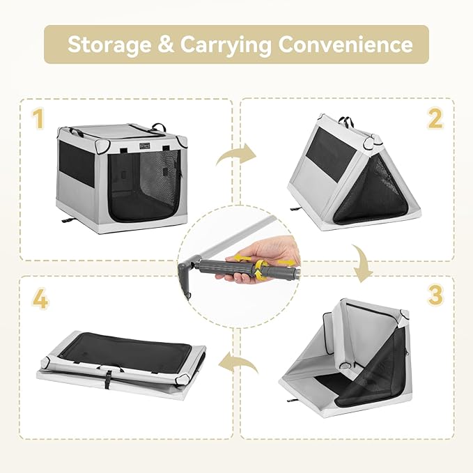 PETSFIT Portable Dog Crate, Soft Dog Crate - 24 Inch Easy Set-up, Light, Sturdy, Comfy Inside with Thicken Mat, Portable Kennel for Home and Travel Light Grey