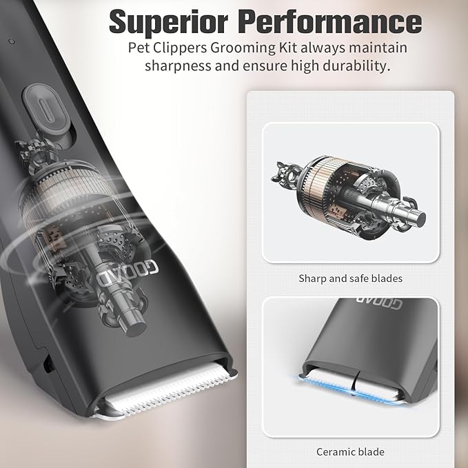 - 【Easy to Use & Clean】- Gooad cat grooming clippers is only 4.7 * 1.7 * 1.18 inches, cat hair trimmer is easy to grip.Lightweight, cordless and ergonomic design allows for super maneuverability and comfortably grooming experience. The blade part of dog clippers for grooming can be removed for cleaning and underwater cleaning.