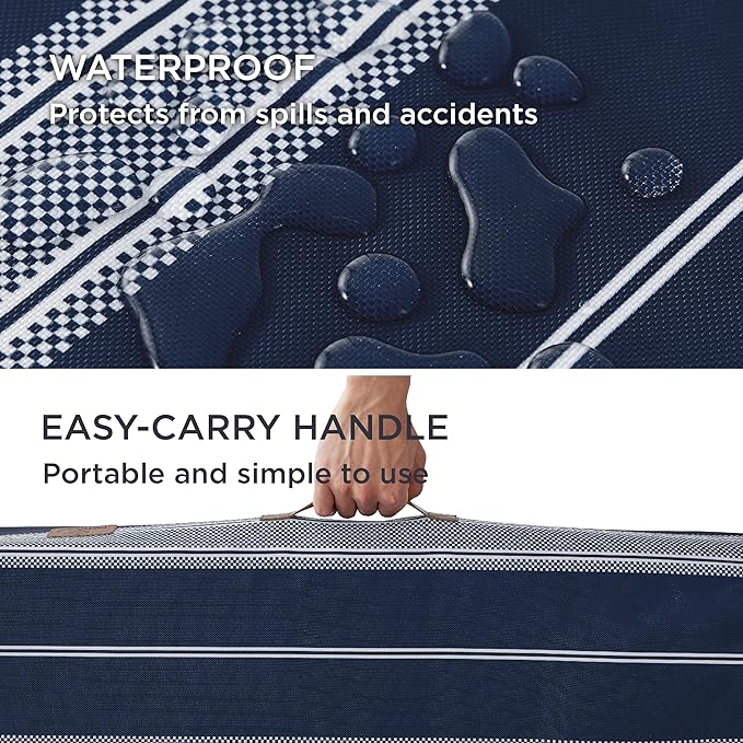 Bedsure Large Patterned Dog Bed for Large Dogs, Outdoor Waterproof Orthopedic Egg Foam Dog Bed Comfort Pet Mats for Crate with Removable Washable Cover(35"x22", Navy Blue)