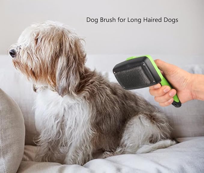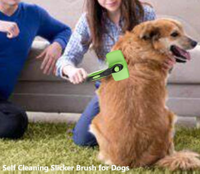 Self Cleaning Slicker Brush for Dogs Cats Brush for Shedding Grooming Brushes for Long Short Haired Pets (Green)
