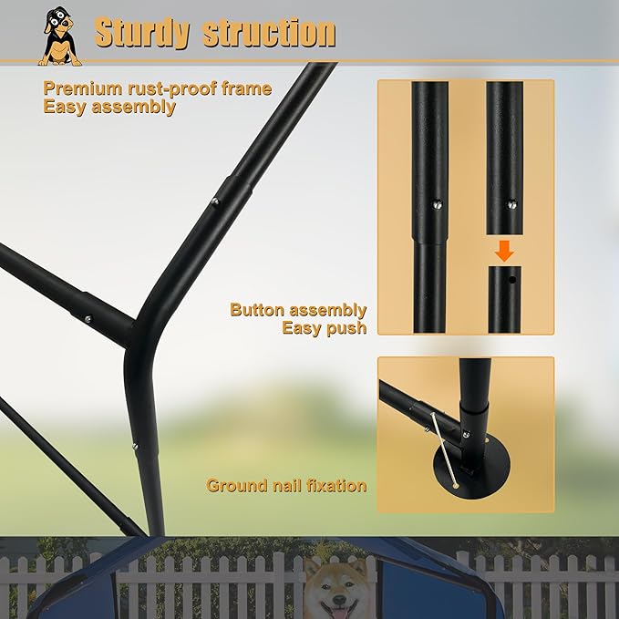 - 【Sturdy and Stable Frame】: The frame of the dog shade shelter is made of high-quality steel and treated with high-quality powder coating, which protects the dog tent from corrosion and rust and extends its service life. this dog shelter is built to last and withstand outdoor conditions, making it a reliable choice for outdoor use.