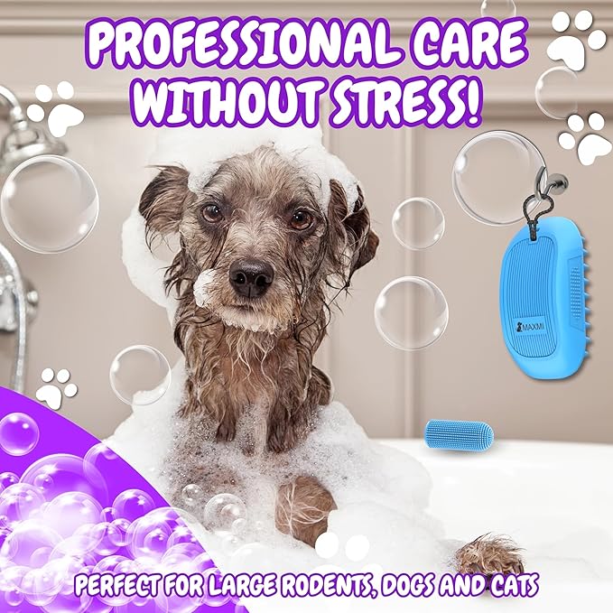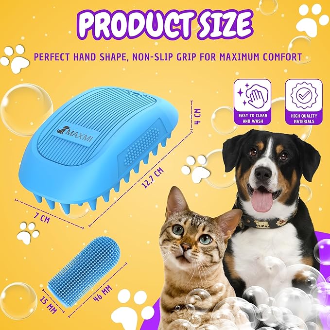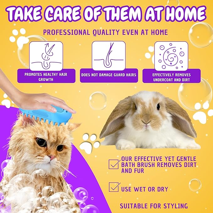 - 🐶【Easy Cleaning & Deep Scrubbing】- the dog shampoo brush offers a deep clean, removing dirt and loose hair. Designed to fit both long and short haired dogs. Soft silicone tips provide a soothing massage that stimulates circulation, promoting skin and coat health without damaging your pet's skin.