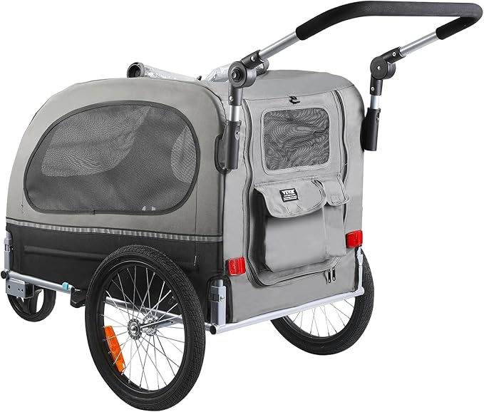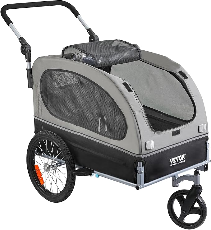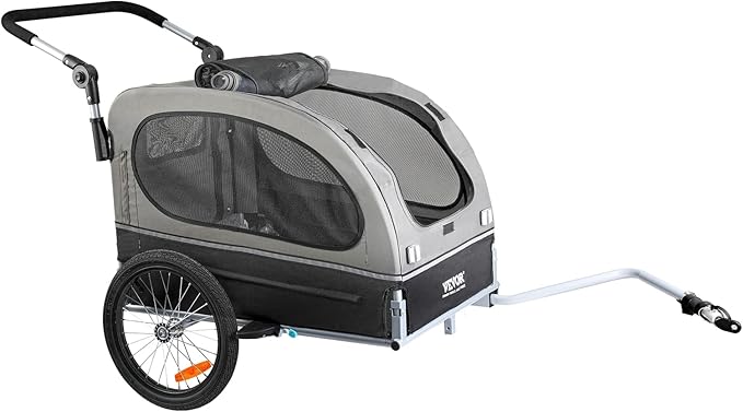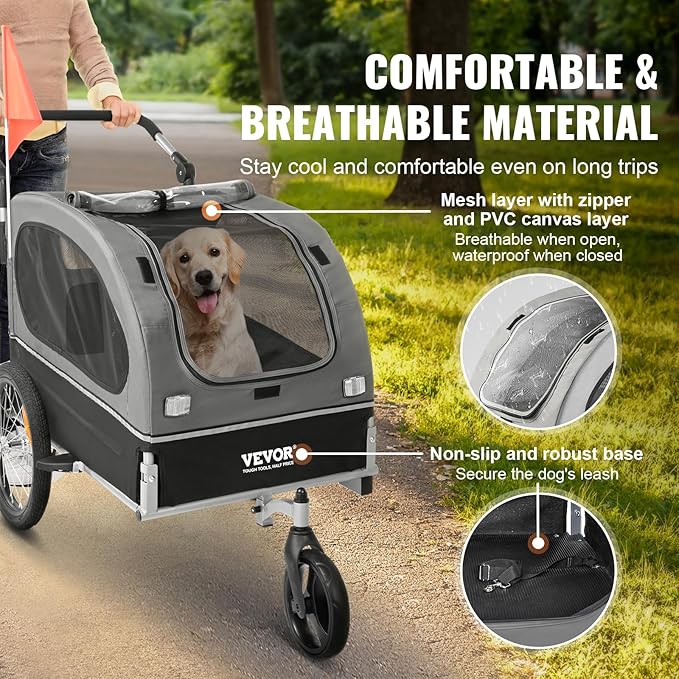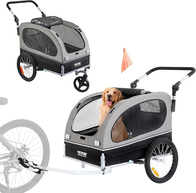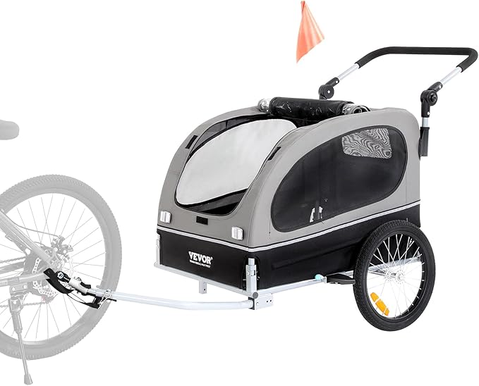 VEVOR Dog Bike Trailer, Supports up to 66/88/100 lbs, 2-in-1 Pet Stroller Cart Bicycle Carrier, Easy Folding Cart Frame with Quick Release Wheels, Universal Bicycle Coupler, Reflectors, Flag