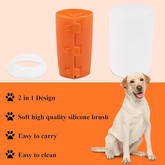 Dog Paw Cleaner Portable, Mudbuster Dog Paw Washer, Dog Foot Cleaner Cup Pet Cleaning Brush Feet Cleaner for Large Medium Breed Dogs, Orange