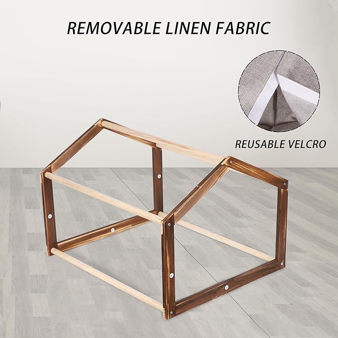 - [Composite Linen Fabric] This dog kennel is made of linen fabric, which ensures proper airflow inside the kennel and prevents stuffiness. Effectively absorb moisture and keep the room dry and not damp. The fabric is soft. Capable of withstanding frequent use, tear and wear resistance. Simplified cleaning tasks and supported machine cleaning.