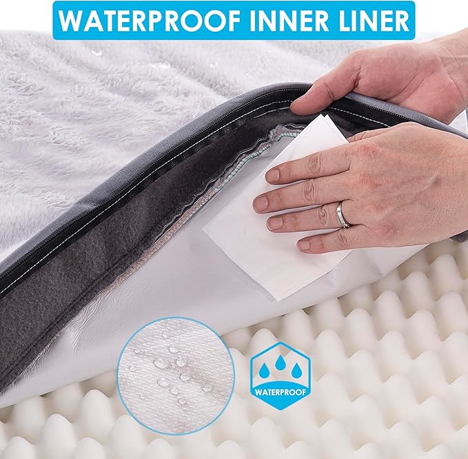 - Waterproof Dog Bed Cover - The top cover of the outer case features fluffy plush for an ultra-soft touch. The extra comfortable filling can instantly absorb any liquids, while the waterproof layer prevents any liquid from leaking into your dog bed