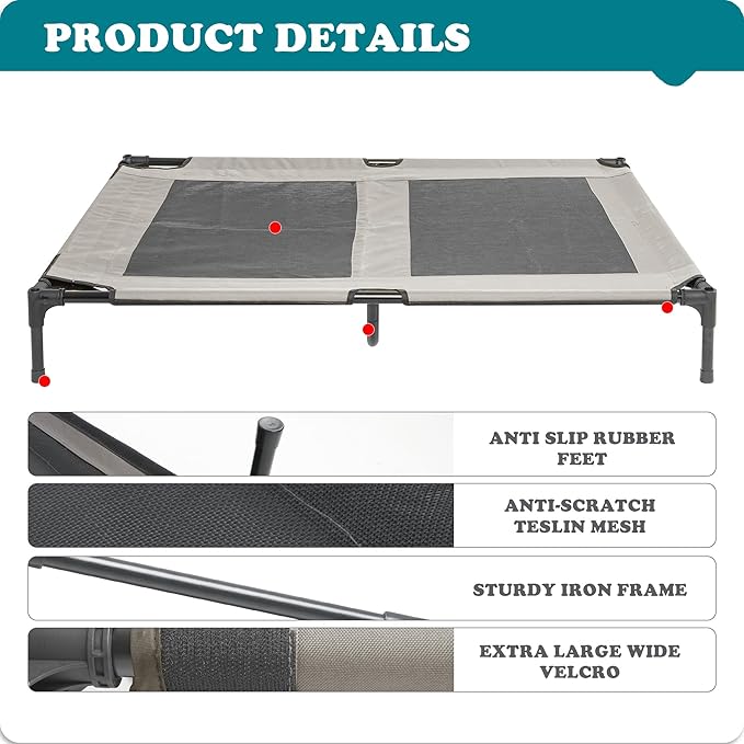 - 【EASY ASSEMBLY】Our elevated dog bed is easy to assemble and disassemble without any tools, and your pet can enjoy a comfortable dog house within 10 minutes.