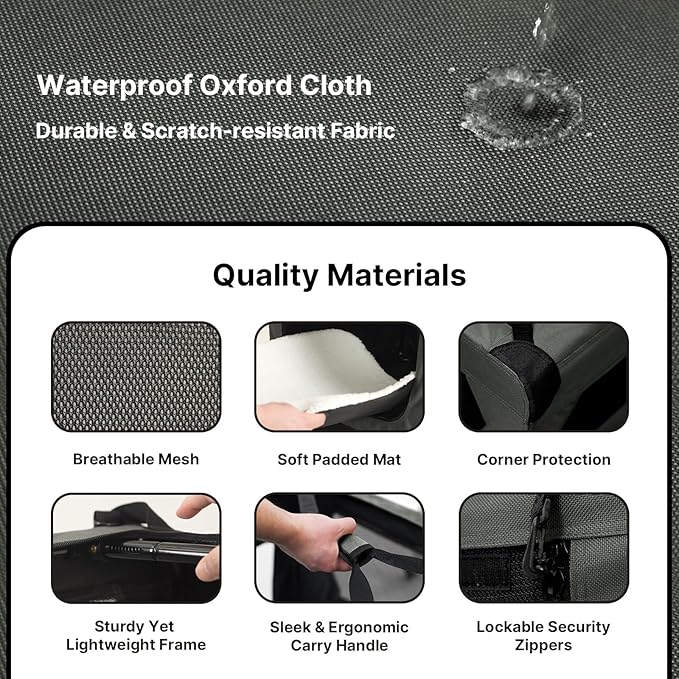- Simple & Clean: This dog crate is designed to make your life easier. It assembles in seconds, folds flat for compact storage, and features water-resistant fabric for easy cleaning. The removable and machine-washable mat keeps things fresh and hygienic.