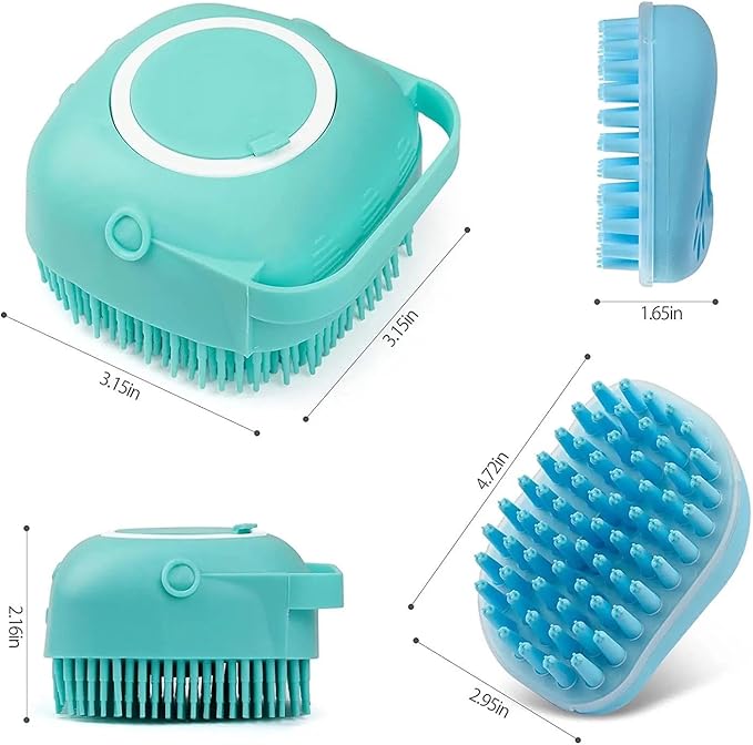 Dog Bath Brush - Pet Grooming Brush with Soap Dispenser - Soft Silicone Dog Shampoo Brush Scrubber - Short Long Haired Dogs and Cats Washing - 2 Count