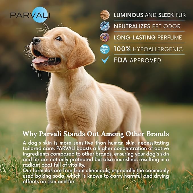 - RADIANCE. Enriched with Vitamin C and Vitamin E, PARVALI showers them with the goodness they deserve, leaving their skin radiant and their spirits uplifted. TRANSFORMATION. Imbued with the magic of natural brighteners like Honey and Pumpkin Seed Oil, it adds a touch of sparkle to your pet's coat, making them shine with happiness and health.