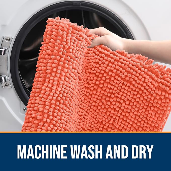 OLANLY Dog Door Mat for Muddy Paws 36x24, Absorbs Moisture and Dirt, Absorbent Non-Slip Washable Mat, Quick Dry Chenille, Mud Mat for Dogs, Entry Indoor Door Mat for Inside Floor, Coral