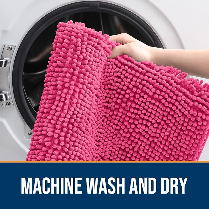 OLANLY Dog Door Mat for Muddy Paws 30x20, Absorbs Moisture and Dirt, Absorbent Non-Slip Washable Mat, Quick Dry Chenille, Mud Mat for Dogs, Entry Indoor Door Mat for Inside Floor, Hot Pink