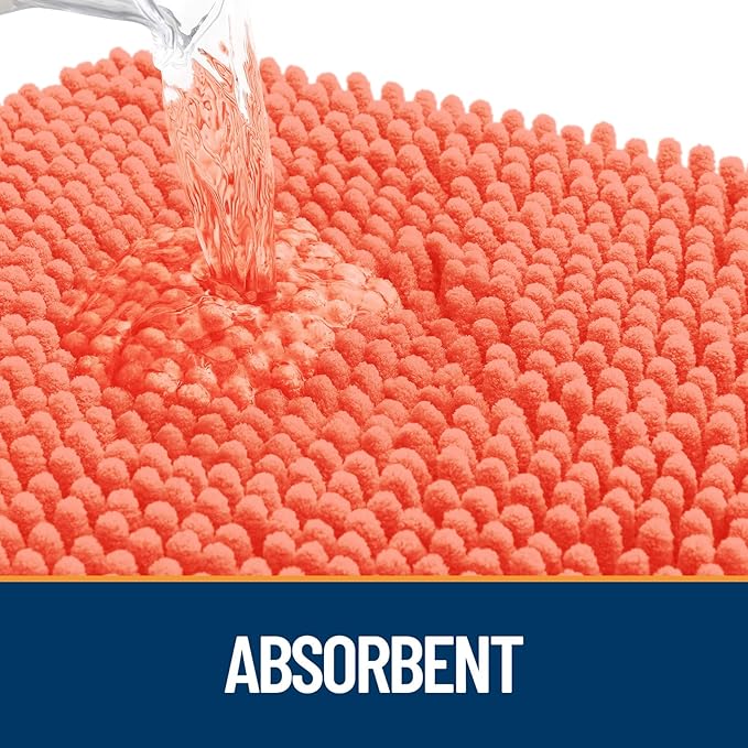 OLANLY Dog Door Mat for Muddy Paws 30x20, Absorbs Moisture and Dirt, Absorbent Non-Slip Washable Mat, Quick Dry Chenille, Mud Mat for Dogs, Entry Indoor Door Mat for Inside Floor, Coral