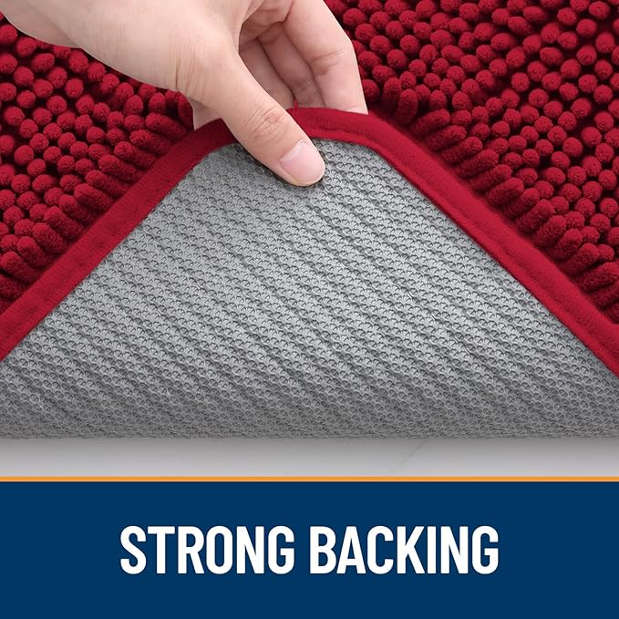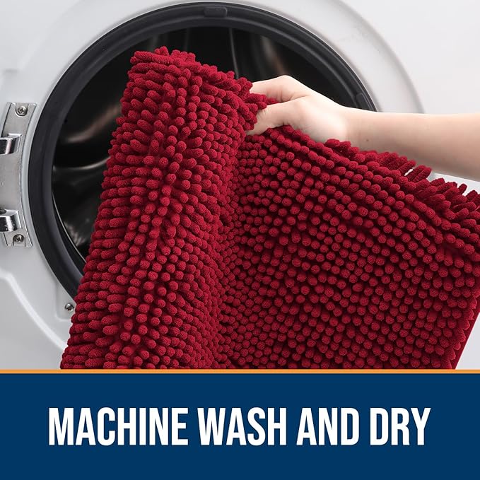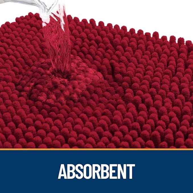 OLANLY Dog Door Mat for Muddy Paws 24x16, Absorbs Moisture and Dirt, Absorbent Non-Slip Washable Mat, Quick Dry Chenille, Mud Mat for Dogs, Entry Indoor Door Mat for Inside Floor, Red