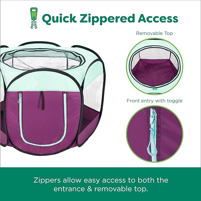 Furhaven Portable Dog Playpen Cat Tent, Pet Playground/Kennel Foldable Indoor Outdoor Zippered Puppy Crate - Purple, Large
