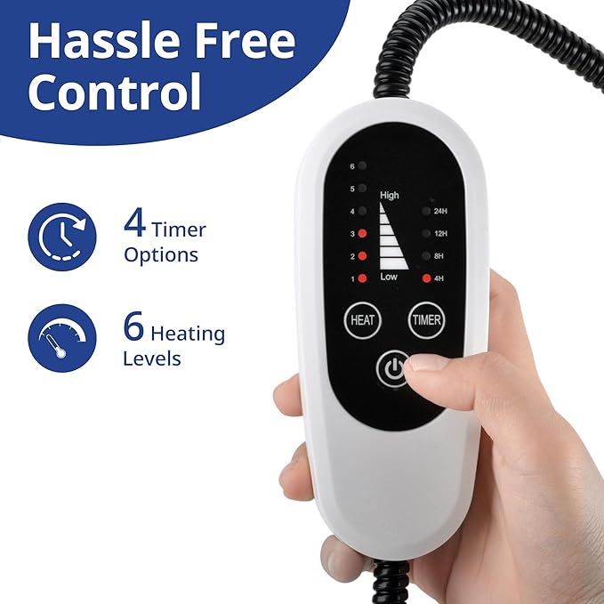 - Features auto shut off timer function, ability to set the time off from 4 time ranges, and conserve energy. Provides warmth to fur kids when you're not at home