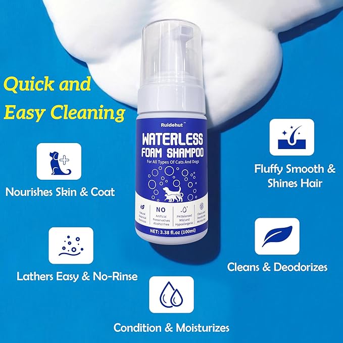 - CONVENIENT TO USE: No need to wash, cleanliness is easier. Simply spray onto the pet's fur, rub and comb, then towel off to quickly remove stains and odors, suitable for busy pet owners.