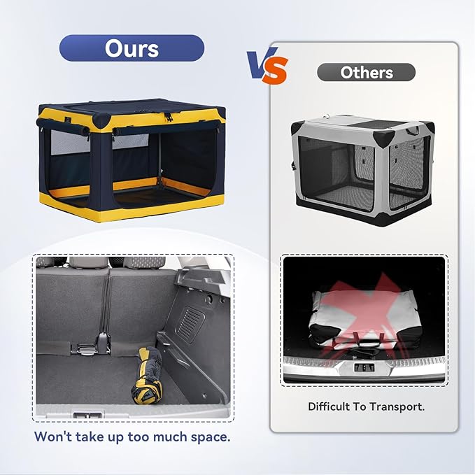 - Enhanced Comfort and Practical Features: The Collapsible dog crate is equipped with mesh windows on 3 sides for optimal ventilation and visibility, ensuring your pet stays comfortable. A convenient storage pocket is included for keeping pet essentials like treats and toys.