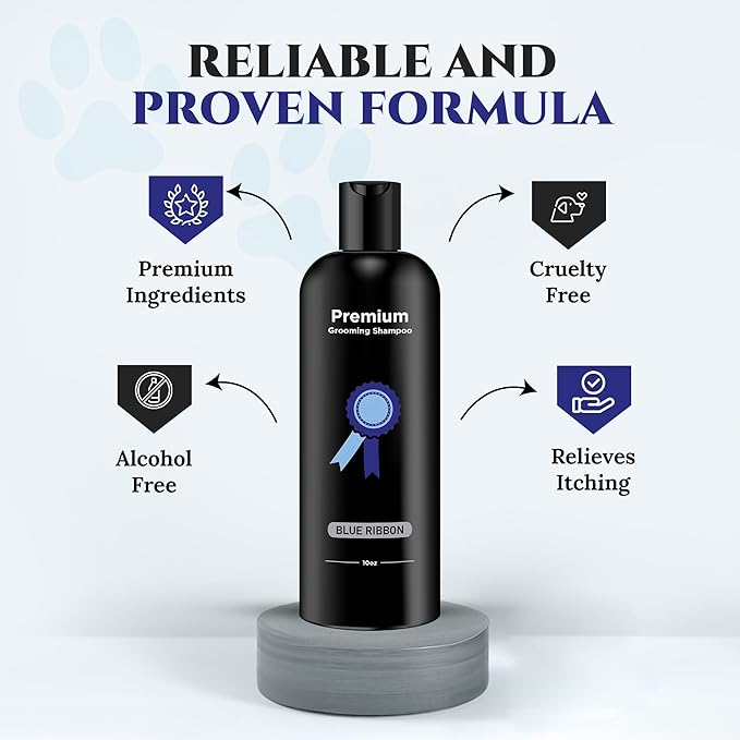 - Premium Grooming Shampoo - Elevate your pup's grooming routine with our premium dog shampoo. Crafted with the utmost care and expertise, our formula combines top-quality ingredients to deliver exceptional results. Say goodbye to dull coats and hello to silky smooth fur that shines with health.