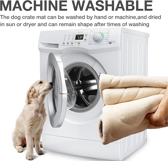 - WATERPROOF&MACHINE WASHABLE — The crate pads for dog cages contains waterproof lining,which will protect the foam from accidents and fluids greatly.Besides,.This washable dog crate mat can be washed whole by machine and dried by dryer or in the sun,and can remain shape after times wash. Let your puppy enjoy a breathable and hygienic mat