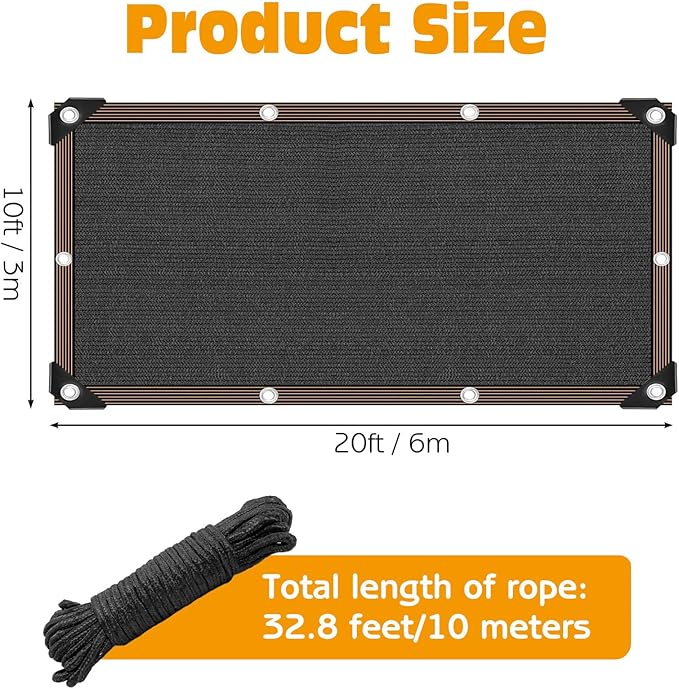 - Easy to install: Lightweight dog house shade net can simply thread the rope through the metal loop grommets on the shade netting to secure it easily; Comes with 32.8 feet/10 meters of secured rope that can be cut to suit individual needs