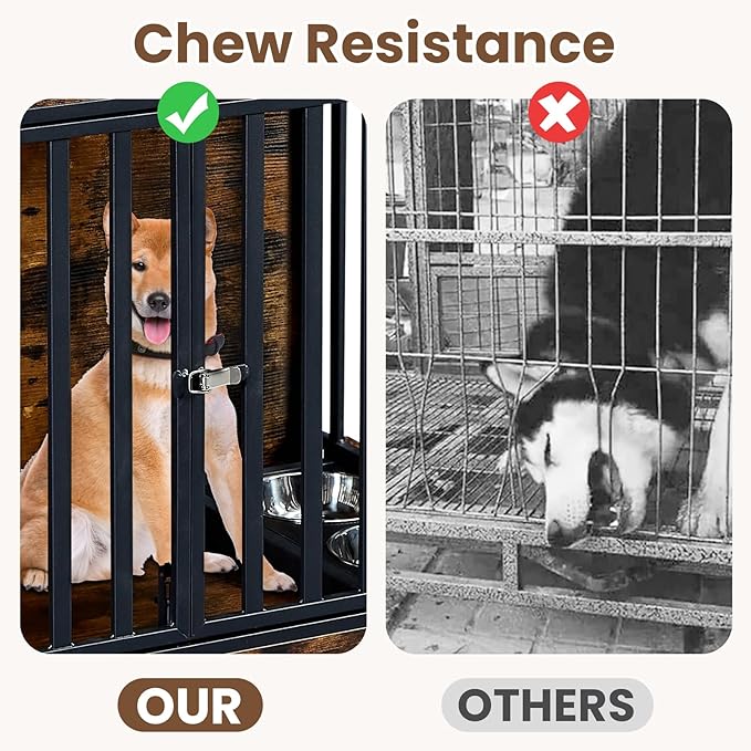 - 2 Adjustable Bowls - This dog kennel furniture includes two 7-inch stainless steel dog bowls that are rust-proof and odor-free. The push-pull design lets you position the bowls either inside or outside the crate, depending on the different eating needs of your furry friends.