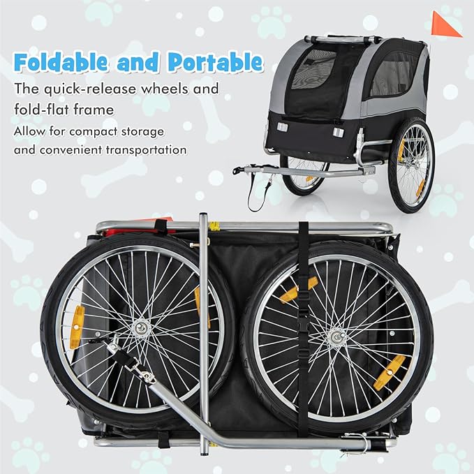 PETSITE Dog Bike Trailer, Dog Cart for Bicycle with 3 Breathable Mesh Entrances, Safety Flage, Easy Folding Pet Carrier with Quick Release Wheels, Pet Bike Trailer for Small & Medium Sized Dogs