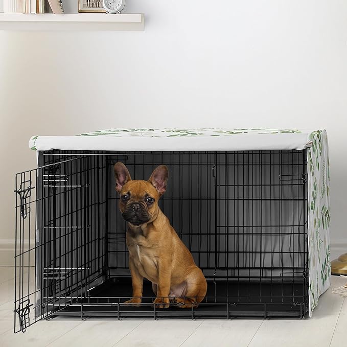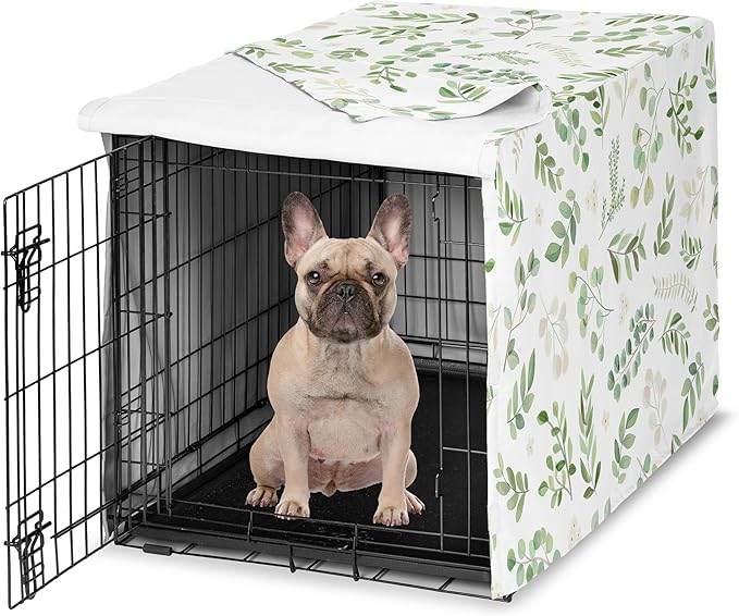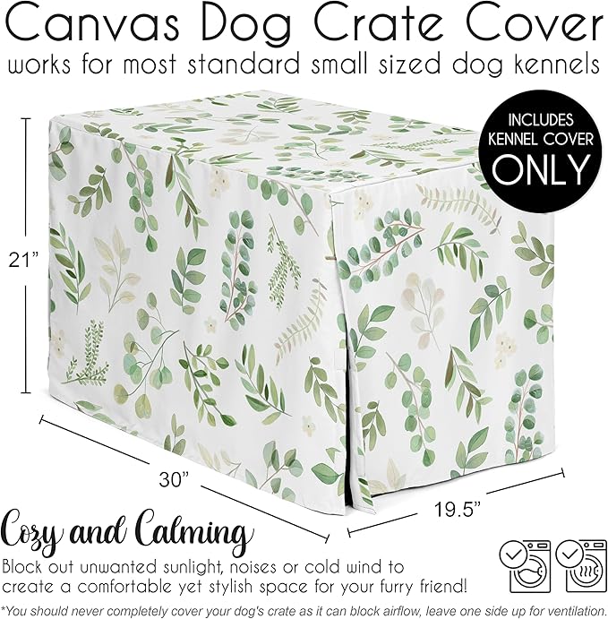 Sweet Jojo Designs Green Boho Floral Leaf Dog Crate Cover – Kennel Covers for 30 Inch Pet Cage Small/Medium - Neutral Sage White Bohemian Watercolor Botanical Flower Woodland Tropical Garden Nature