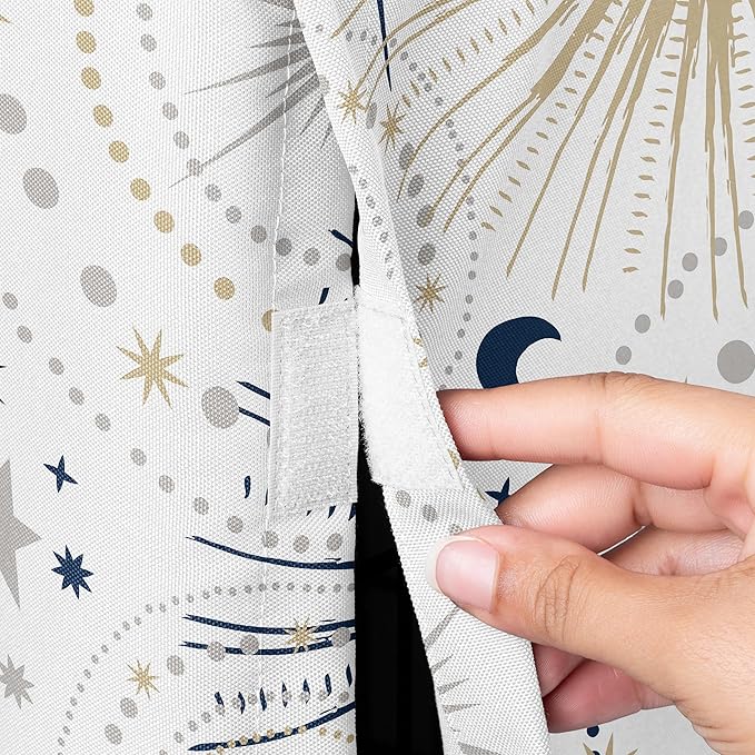 - Featuring exclusive canvas fabric of navy blue, grey, gold and gray star moon celestial sky shabby chic stars and moons.