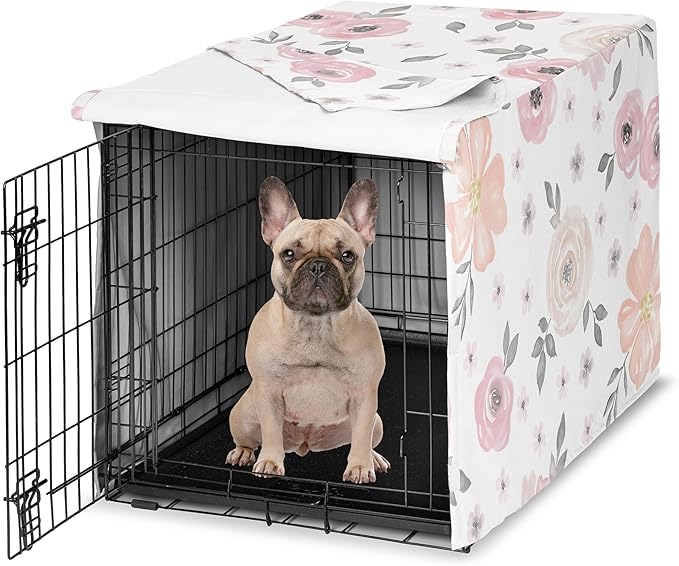 Sweet Jojo Designs Blush Pink Grey Boho Floral Dog Crate Cover – Kennel Covers for 30 Inch Pet Cage Small/Medium - Bohemian Farmhouse Shabby Chic Rose Lily Watercolor Flower Elegant Gray and White