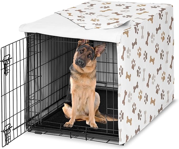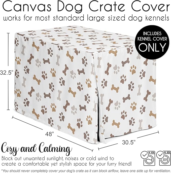 Sweet Jojo Designs Bone Paw Print Dog Crate Cover – Kennel Covers for 48 Inch Pet Cage Large - Neutral Grey Taupe Brown Modern Off White Gray Tan Puppy