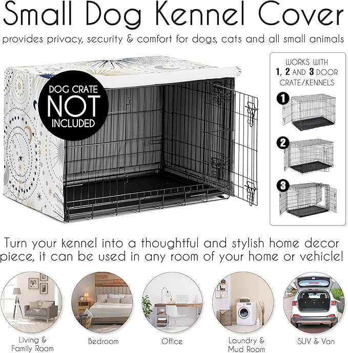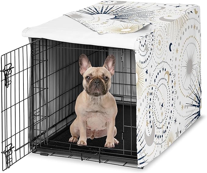 Sweet Jojo Designs Navy Blue Star and Moon Dog Crate Cover – Kennel Covers for 30 Inch Pet Cage Small/Medium - Gold Grey Celestial Sky Stars Gray Shabby Chic