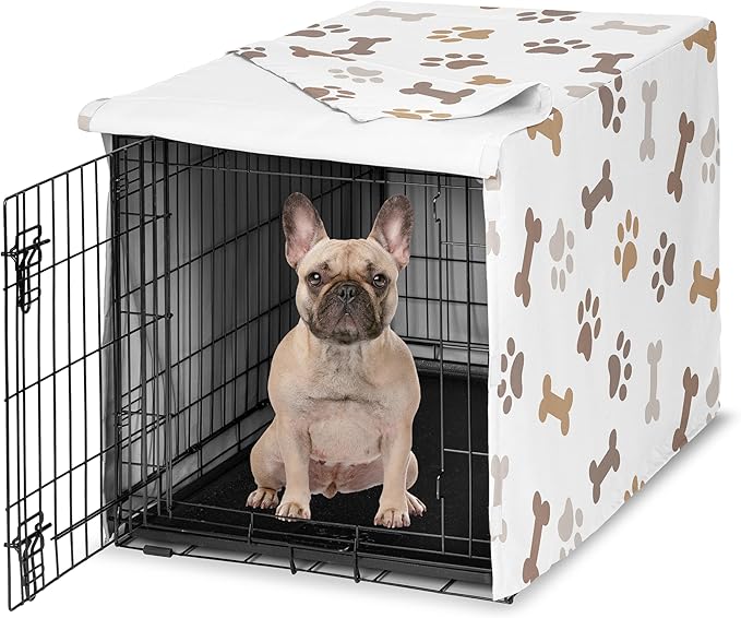 Sweet Jojo Designs Bone Paw Print Dog Crate Cover – Kennel Covers for 30 Inch Pet Cage Small/Medium - Neutral Grey Taupe Brown Modern Off White Gray Tan Puppy