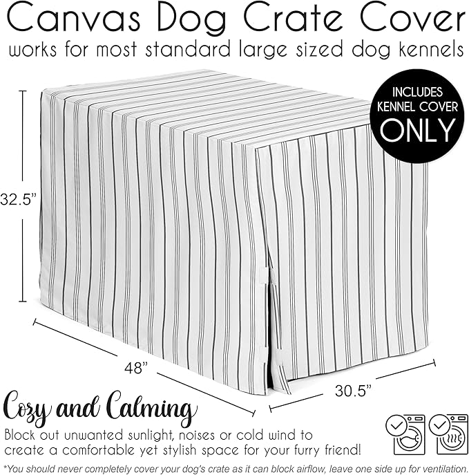 - This durable and stylish dog crate cover is the best way to create a comfortable and cozy space for your four legged friend with a protective canvas fabric that securely covers the top of your pets cage for a dark and tranquil crate at all times. Give your puppy a space where they can rest and relax after a long day of playing or secure flaps with our hook and loop closure design to allow your pet to enter and exit as they please.