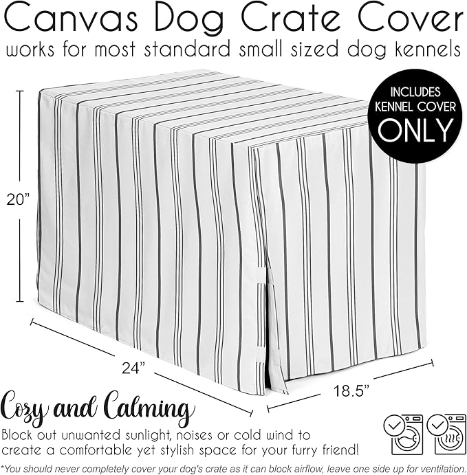Sweet Jojo Designs White and Grey Stripe Dog Crate Cover – Kennel Covers for 24 Inch Pet Cage Small - Neutral Contemporary Modern Pinstriped Minimalist Gray