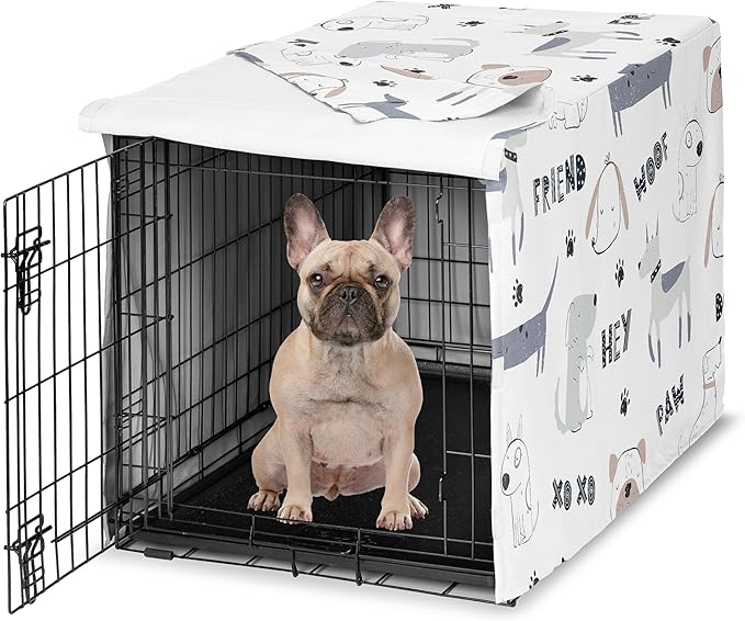 - This durable and stylish dog crate cover is the best way to create a comfortable and cozy space for your four legged friend with a protective canvas fabric that securely covers the top of your pets cage for a dark and tranquil crate at all times. Give your puppy a space where they can rest and relax after a long day of playing or secure flaps with our hook and loop closure design to allow your pet to enter and exit as they please.