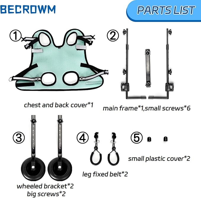 - 【Easy to install】: This adjustabledog wheelchair for back legs is easy to assemble and lightweight, at just 1.5 pounds, making it perfect for travel. With convenient buckles for leashing and an adjustable height, width and length, this dog wheelchair will fit your pet perfectly