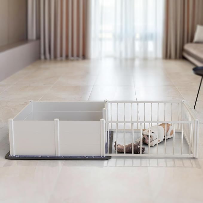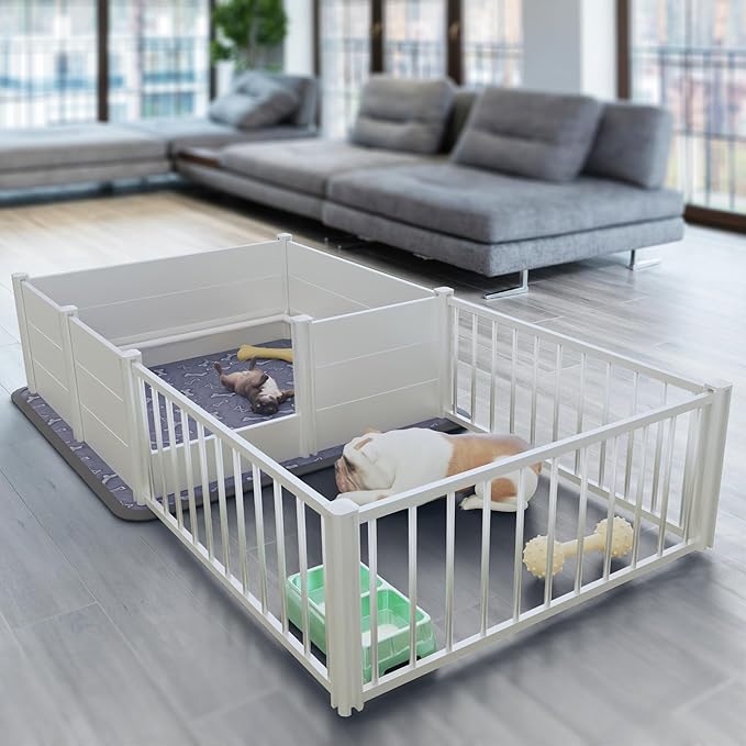 - Two rooms with large space design: This dog birthing box scientific and reasonable design provides an independent environment for the mother to isolate and rest after breastfeeding, and the removable height-adjustable door at any time won't let the puppy be afraid to feel its mother's presence at any time, When your body recovers, the center panel can be completely removed to create a large play space.and it's also convenient for us to clean up after it in and out in the daily life.