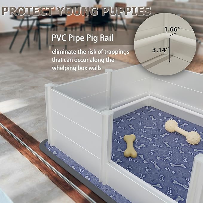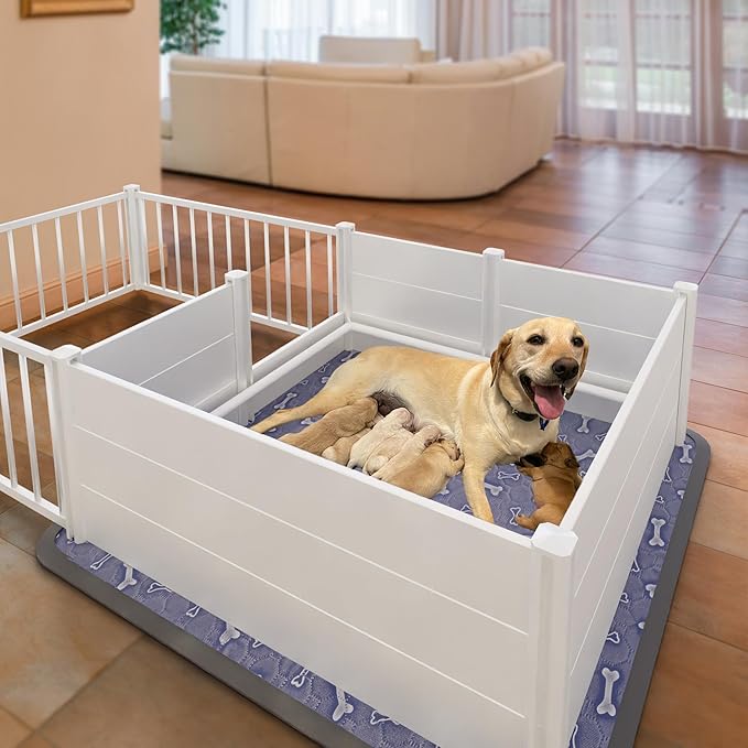 - Upgraded Design: Our whelping crate is equipped with a waterproof floor mat for easy cleaning, the product design is removable easy to clean .