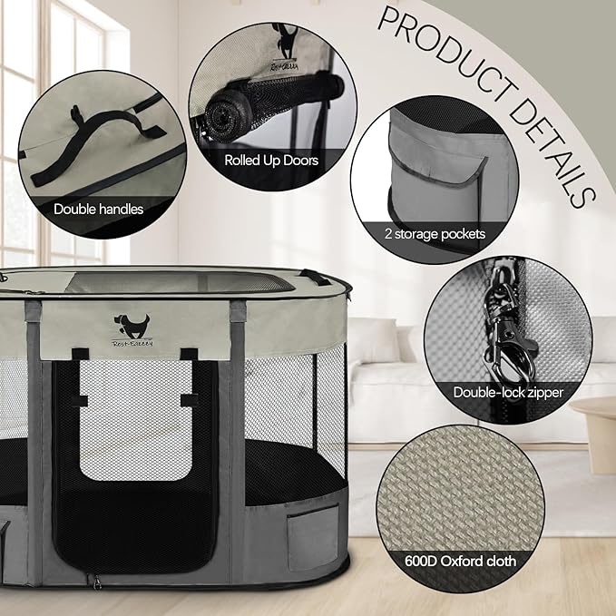 - Breathable & Safe Outdoor Design: The puppy playpen has 360°thick mesh and a removable top to provide good ventilation for pets. The dog cage medium sized dog enclosure has two doors for easy access for your pet. The pop up dog playpen provides ample room for pets to move comfortably while keeping them safely contained.