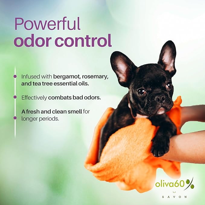 Natural Dog Shampoo Bar with Bergamot, Rosemary, and Tea Tree | Eco-Friendly, Long-Lasting Dog Bath | Odor Control, Sulfate-Free, Nourishing Oils for Shiny Coat | Dog Essentials | Oliva 60