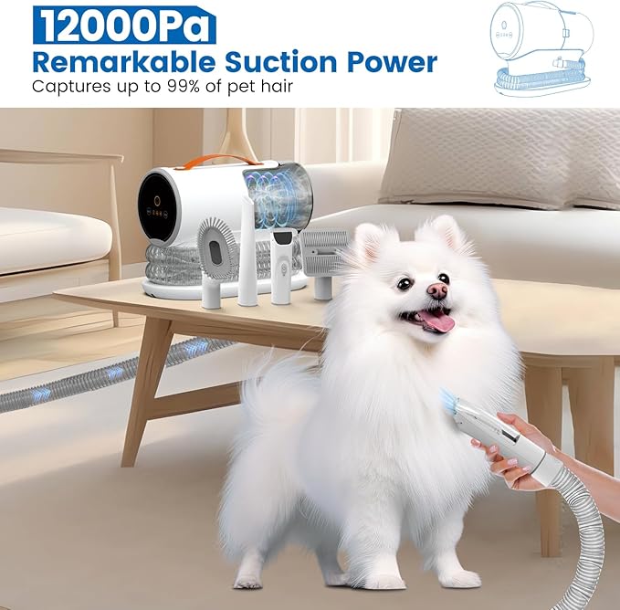 - 12000PA of Suction Power: The Dog Grooming Vacuum is truly remarkable with its 12000PA of suction power. This powerful suction enables it to efficiently capture pet hair and dirt. Whether you're grooming a long-haired or short-haired dog, it can handle the task with ease. It ensures a clean grooming environment and helps keep your home tidy.