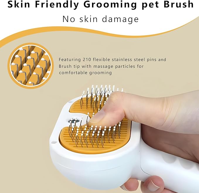 - 【Sturdy, Safe and Skin-Friendly Cat Brush】: This cat steam brush are made of high-quality ABS plastic for the casing and stainless steel for the bristles. And, we've wrapped the bristles in a protective gel to ensure effective removal of dead skin and loose hair while protecting your pet's skin from damage. You can add conditioner or softener to the spray when you want to enhance the softness and shine of your cat's coat