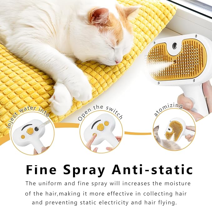 - 【3 in 1 Cat Steam Brush】: Multi-functional pet grooming tool that combines the functions of hair removal, cleaning and massage. While removing hair, clean dirt from hair and skin. Let you don't need to worry about cleaning your beloved pet every day. Note: Our cat brush only converts water into spray and does not heat it