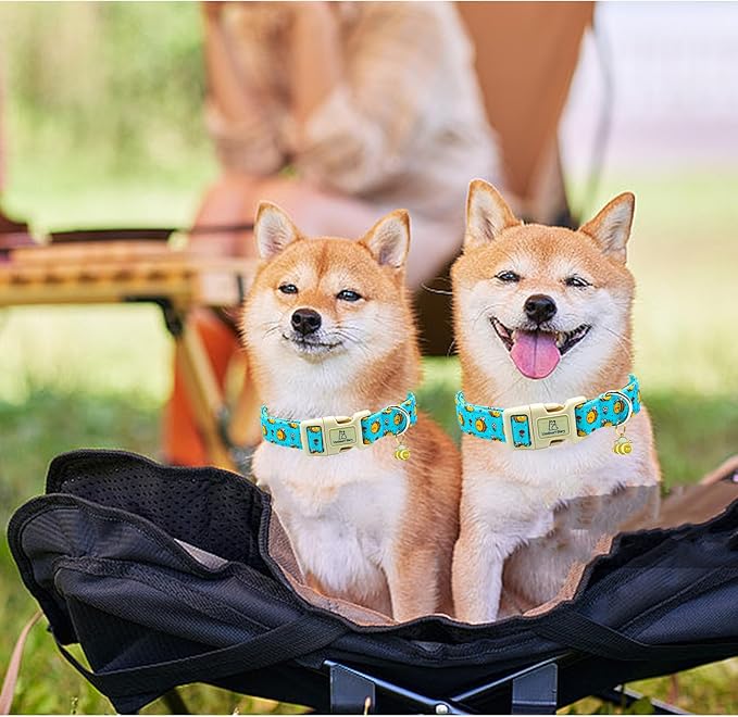 Lionheart glory Dog Collar, Bees Blue Dogs Collar Adjustable Soft Comfortable Collars for Small Dogs Girl or Boy Pet Gift Cute Spring Summer Collar