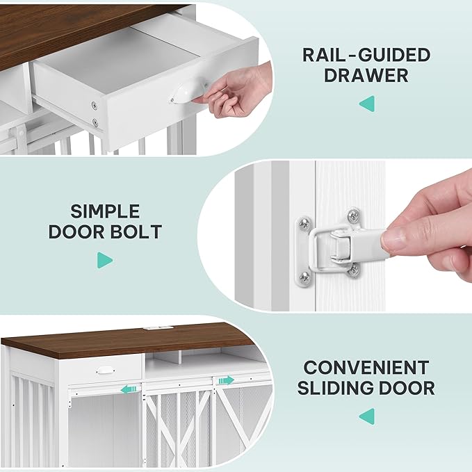 - Easy Setup: This dog cage furniture includes all essentials and clear instructions for hassle-free assembly. To expedite installation and ensure safety, we recommend assembling with two or more individuals for larger pieces. NOTE: This product comes in 2 packages. Once you receive the first one, the rest will follow shortly